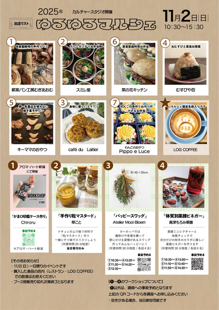 11月2日(日)カルチャースタジオで今年も「ゆるゆるマルシェ」を開催いたします!