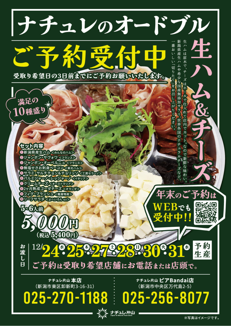 ナチュレ片山で大人気の生ハムとチーズが味わえるオードブルです。